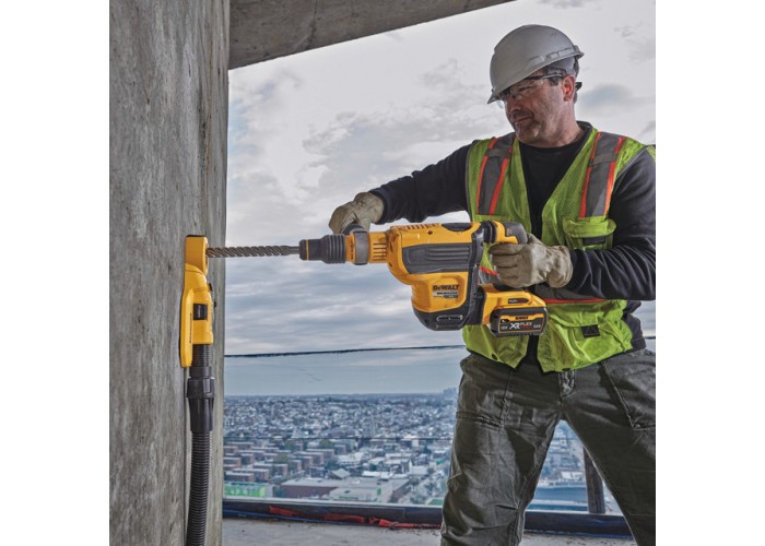 - Перфоратор оснащен монтажными отверстиями и крепежными деталями для установки метки инструмента DeWALT;