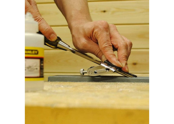 - Запатентованный фиксатор надежно закрепляет нож рубанка, струга или стамеску